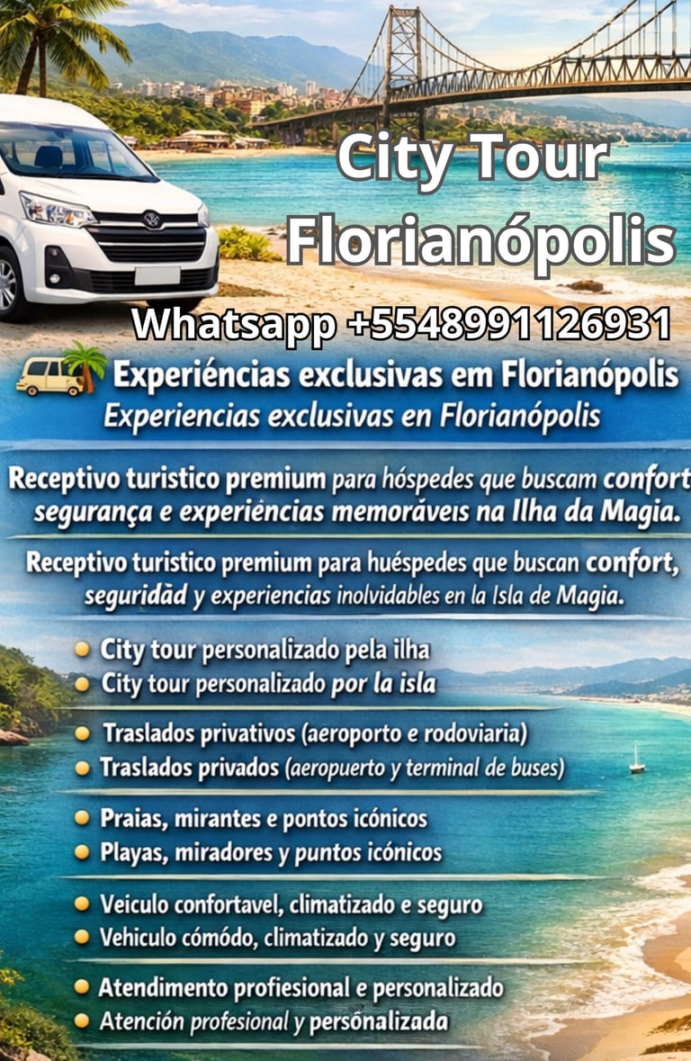Reserva ahora tu City Tour en Florianópolis con guía local, vehículo propio y rutas personalizadas, con comodidad y seguridad.